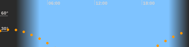 | Untergang | 06:52 Uhr im Westen (αAz = 261,5°) |