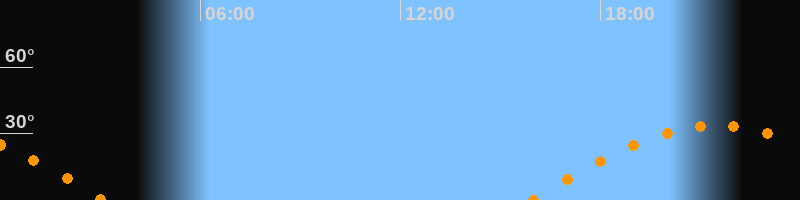 | Aufgang | 15:55 Uhr im Osten (αAz = 98,5°) |