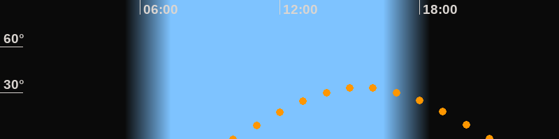 | Höchster Stand (Kulmination) | 15:30 Uhr (h = 33,5°) |