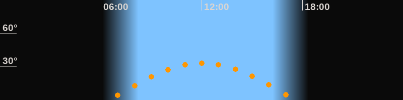| Höchster Stand (Kulmination) | 12:02 Uhr (h = 33,5°) |