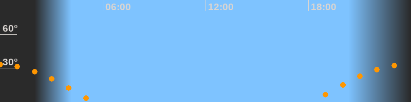 | Untergang | 05:26 Uhr im Westen (αAz = 261,5°) |
