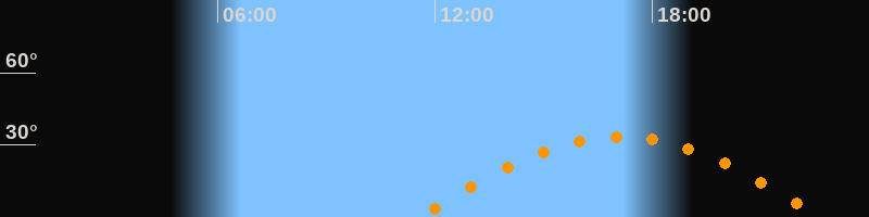 | Höchster Stand (Kulmination) | 17:07 Uhr (h = 33,5°) |