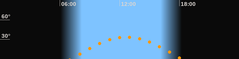 | Höchster Stand (Kulmination) | 12:39 Uhr (h = 33,5°) |