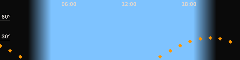 | Aufgang | 15:23 Uhr im Osten (αAz = 98,5°) |