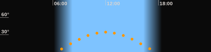 | Höchster Stand (Kulmination) | 12:00 Uhr (h = 34,5°) |