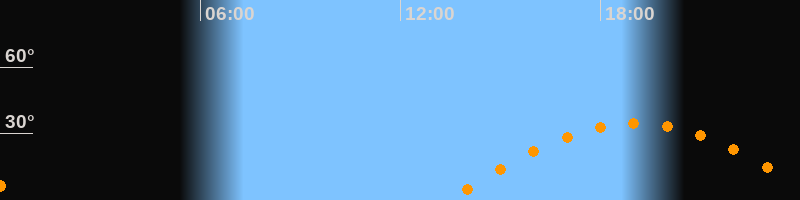 | Höchster Stand (Kulmination) | 19:03 Uhr (h = 34,5°) |
