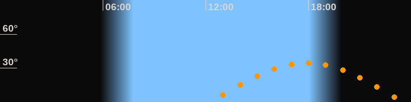 | Höchster Stand (Kulmination) | 17:54 Uhr (h = 34,5°) |