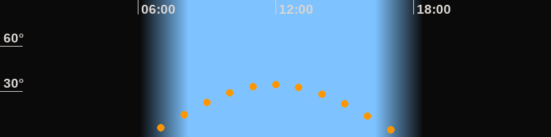| Höchster Stand (Kulmination) | 11:55 Uhr (h = 34,5°) |