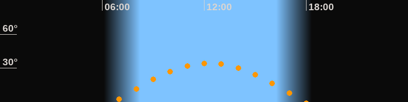 | Höchster Stand (Kulmination) | 12:17 Uhr (h = 34,5°) |