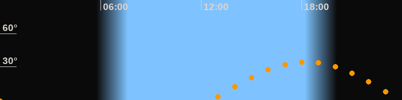 | Höchster Stand (Kulmination) | 18:15 Uhr (h = 34,5°) |