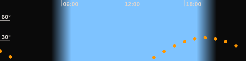 | Aufgang | 14:21 Uhr im Osten (αAz = 96,9°) |