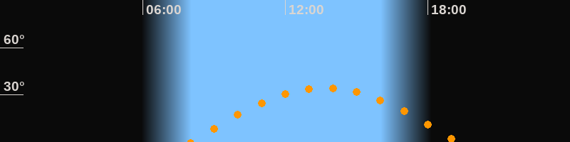 | Höchster Stand (Kulmination) | 13:38 Uhr (h = 34,5°) |