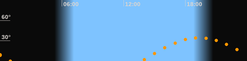 | Höchster Stand (Kulmination) | 19:20 Uhr (h = 34,5°) |