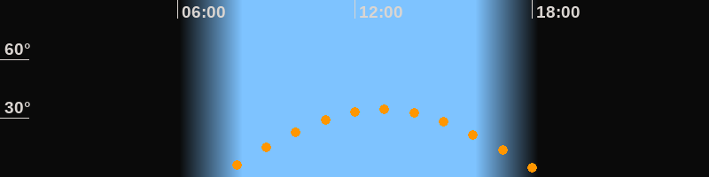 | Höchster Stand (Kulmination) | 12:55 Uhr (h = 34,5°) |