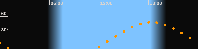 | Aufgang | 11:25 Uhr im Osten (αAz = 72,8°) |