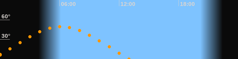 | Untergang | 13:02 Uhr im Westen (αAz = 287,2°) |