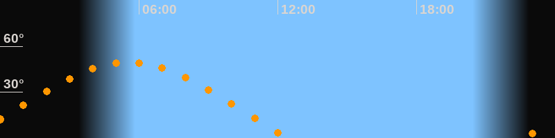 | Höchster Stand (Kulmination) | 05:33 Uhr (h = 49,6°) |