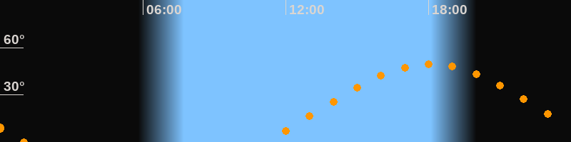 | Höchster Stand (Kulmination) | 18:05 Uhr (h = 49,6°) |