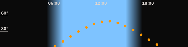 | Aufgang | 06:46 Uhr im Osten (αAz = 72,8°) |