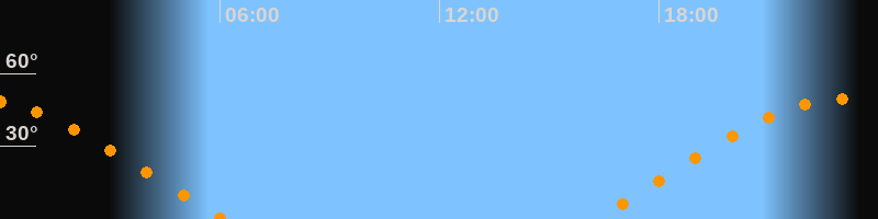 | Aufgang | 16:14 Uhr im Osten (αAz = 72,8°) |