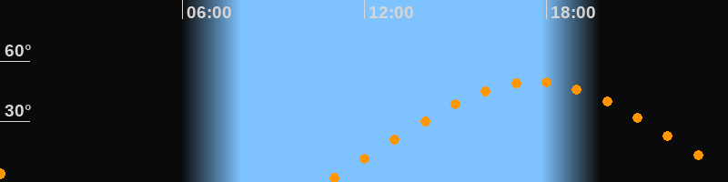 | Höchster Stand (Kulmination) | 17:35 Uhr (h = 49,6°) |