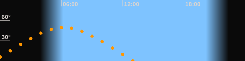 | Höchster Stand (Kulmination) | 06:13 Uhr (h = 49,6°) |