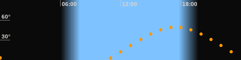 | Höchster Stand (Kulmination) | 17:29 Uhr (h = 49,6°) |