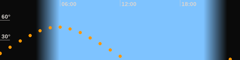 | Höchster Stand (Kulmination) | 05:46 Uhr (h = 49,6°) |