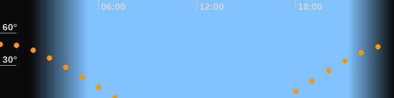 | Untergang | 07:06 Uhr im Westen (αAz = 287,2°) |