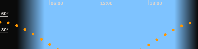 | Aufgang | 17:06 Uhr im Osten (αAz = 72,8°) |