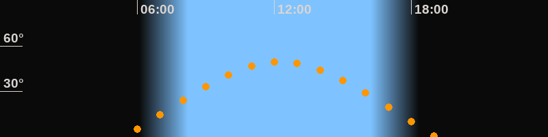 | Höchster Stand (Kulmination) | 12:15 Uhr (h = 49,6°) |