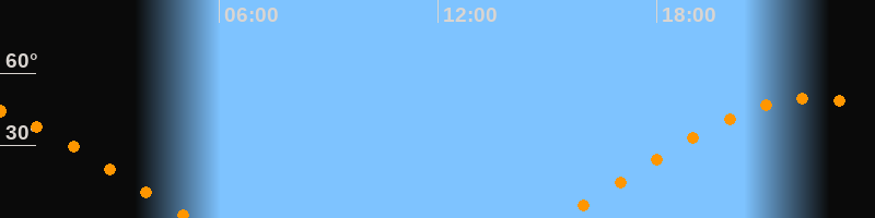 | Aufgang | 15:21 Uhr im Osten (αAz = 72,8°) |