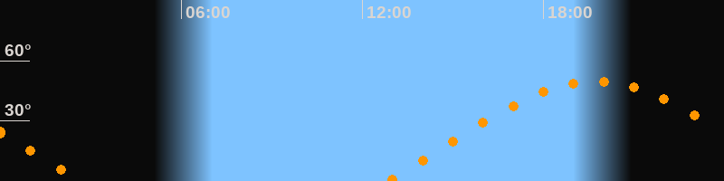 | Aufgang | 12:48 Uhr im Osten (αAz = 72,8°) |
