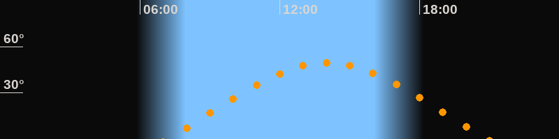 | Höchster Stand (Kulmination) | 14:02 Uhr (h = 49,6°) |