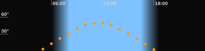 | Höchster Stand (Kulmination) | 11:26 Uhr (h = 49,6°) |
