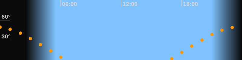 | Aufgang | 16:41 Uhr im Osten (αAz = 72,8°) |