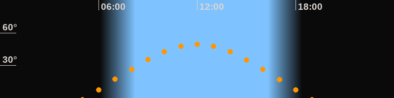 | Höchster Stand (Kulmination) | 11:59 Uhr (h = 49,6°) |