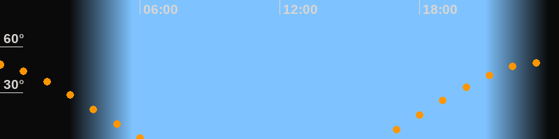 | Aufgang | 16:16 Uhr im Osten (αAz = 72,8°) |