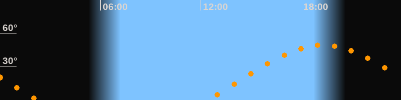 | Aufgang | 12:24 Uhr im Osten (αAz = 72,8°) |