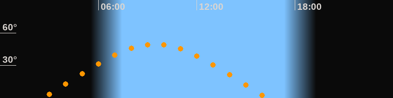 | Höchster Stand (Kulmination) | 09:27 Uhr (h = 49,6°) |