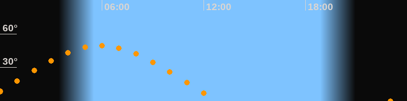 | Höchster Stand (Kulmination) | 05:55 Uhr (h = 49,6°) |