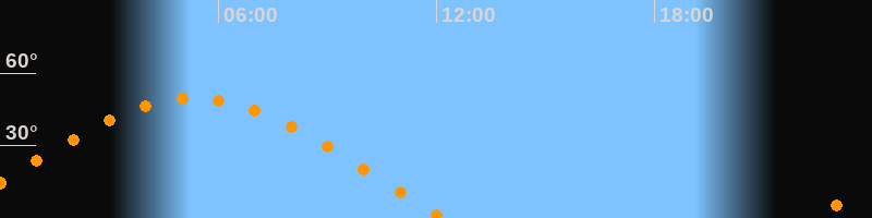 | Aufgang | 22:21 Uhr im Osten (αAz = 72,8°) |