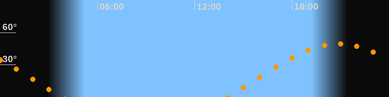 | Aufgang | 13:58 Uhr im Osten (αAz = 72,8°) |