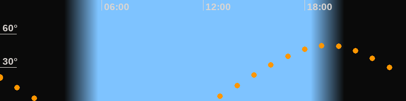 | Aufgang | 12:27 Uhr im Osten (αAz = 72,8°) |