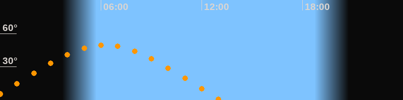 | Höchster Stand (Kulmination) | 06:15 Uhr (h = 49,6°) |
