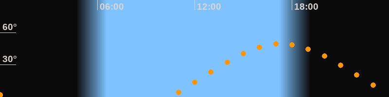 | Aufgang | 10:27 Uhr im Osten (αAz = 72,8°) |