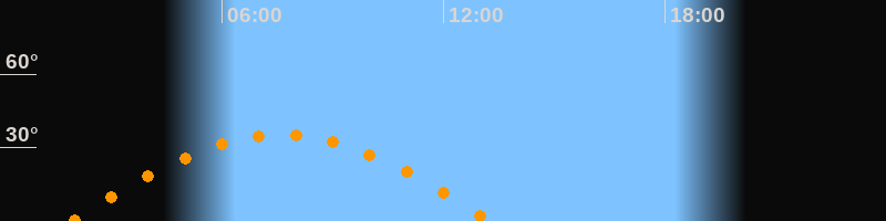 | Höchster Stand (Kulmination) | 07:36 Uhr (h = 35,3°) |