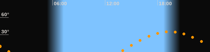 | Aufgang | 13:39 Uhr im Osten (αAz = 95,6°) |