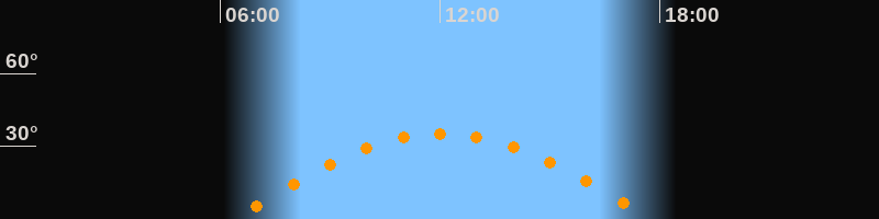 | Höchster Stand (Kulmination) | 12:04 Uhr (h = 35,3°) |
