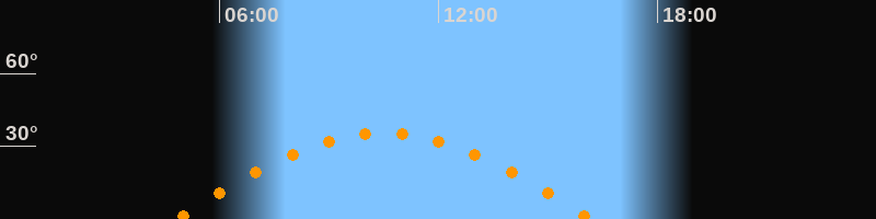 | Höchster Stand (Kulmination) | 10:30 Uhr (h = 35,3°) |